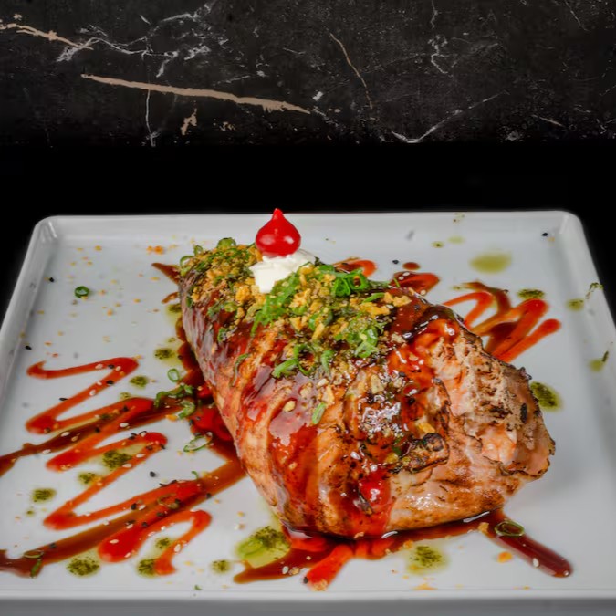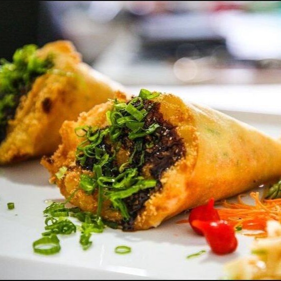 Harumaki de Salmão Grelhado com Cream Cheese e Cebolinha.