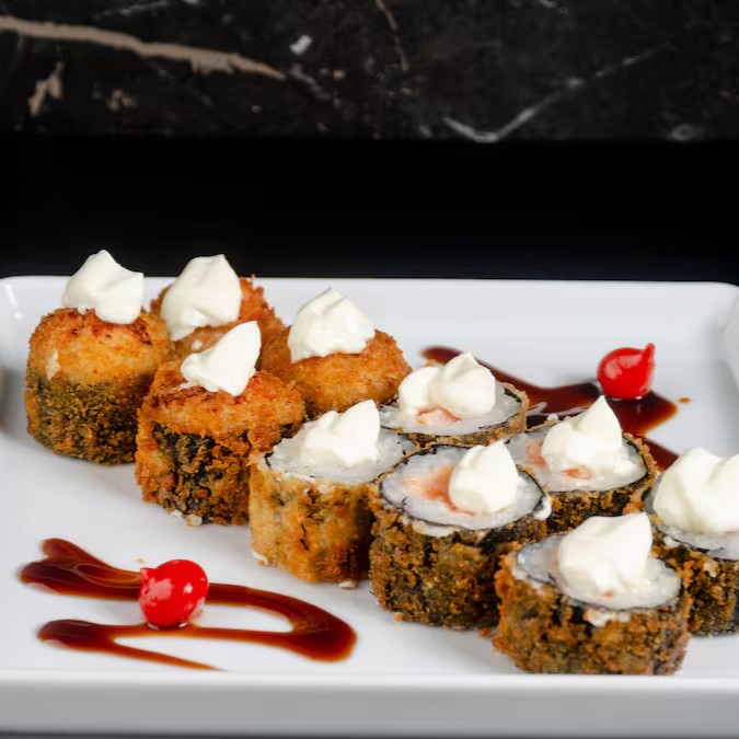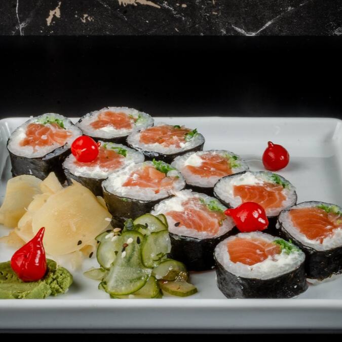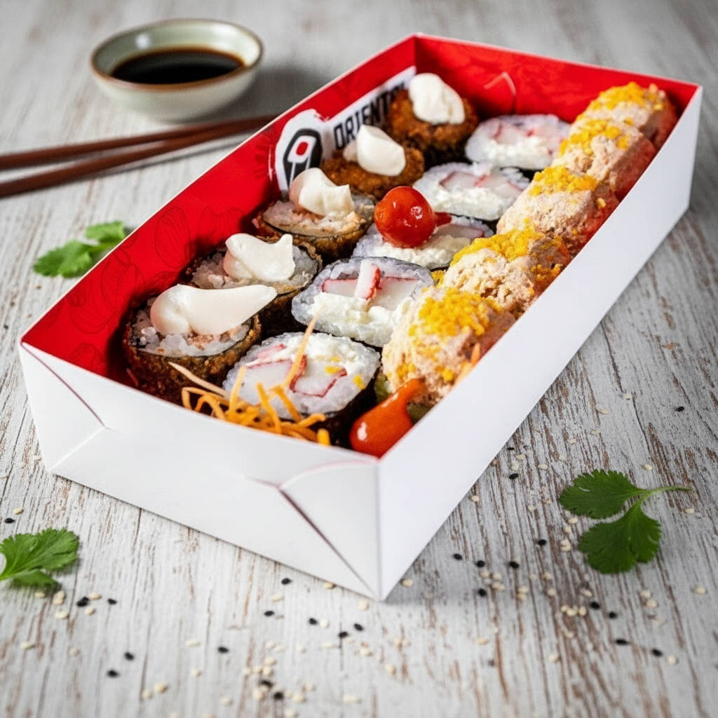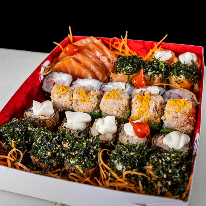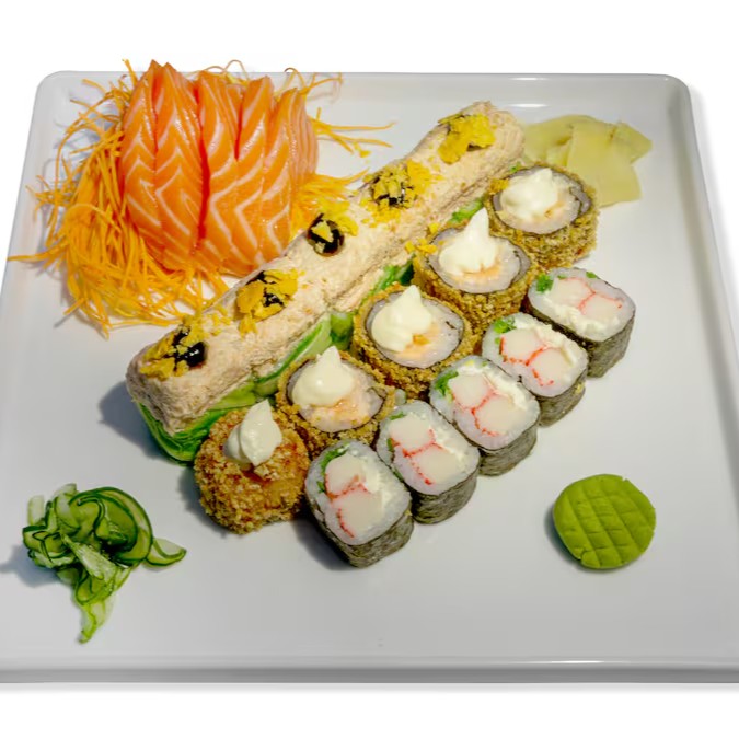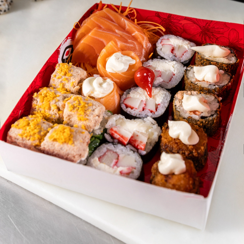5 Sashimis, 5 Hossomaki de Kani, 5 Hot Philadelphia, 5 Acelga maki