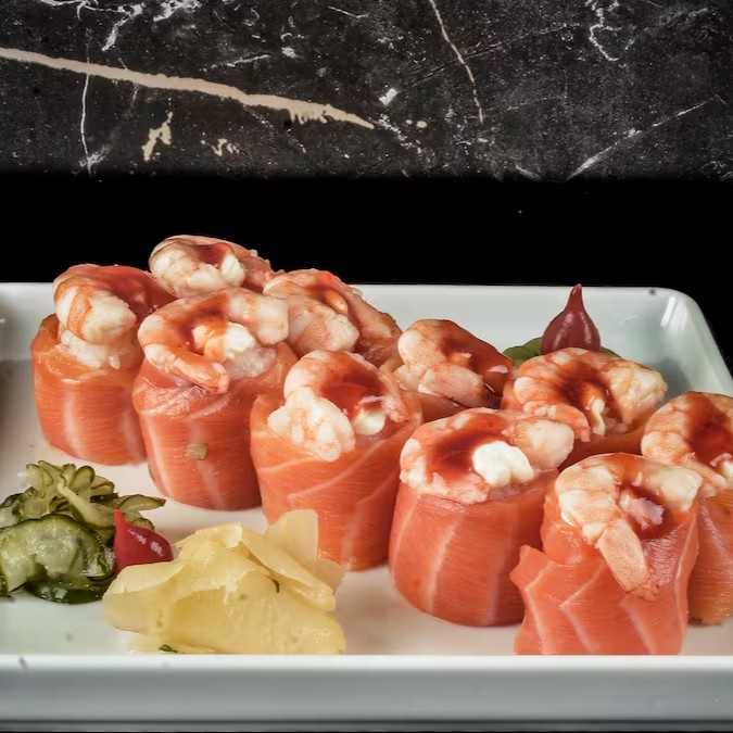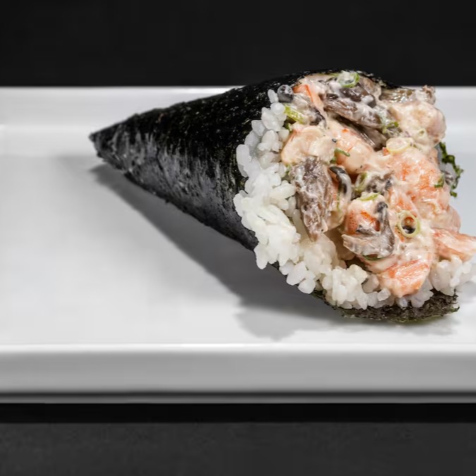 Camarão, Shimeji, Cream Cheese, Cebolinha e Gergelim.