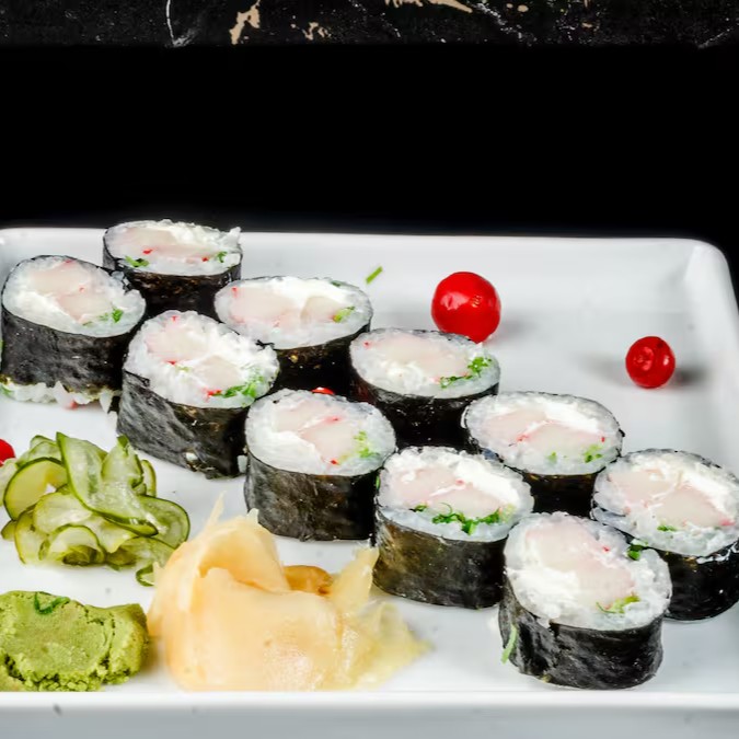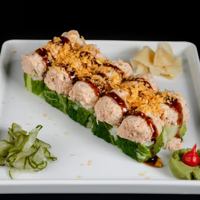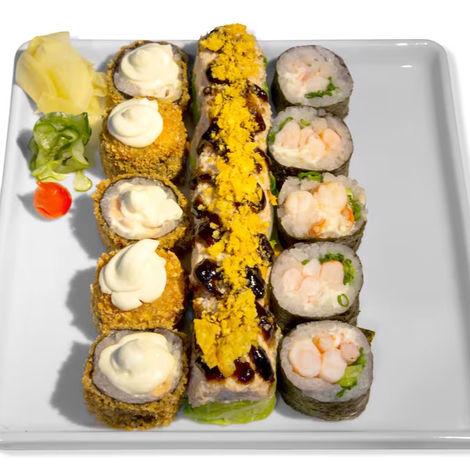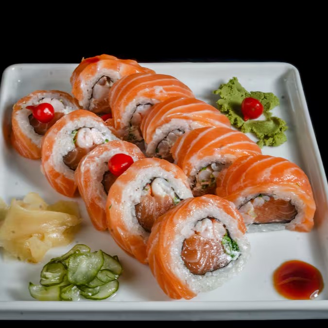 Salmão, Camarão, Kani, Polvo, Cream Cheese, Cebolinha.