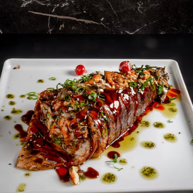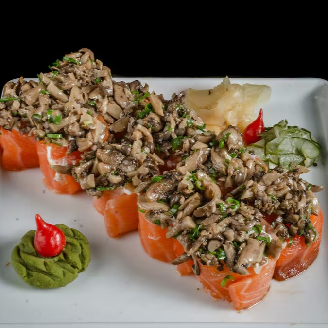 Salmão, Shimeji, Cream Cheese, Cebolinha e Gergelim.