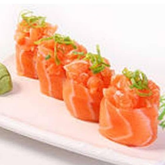 4 sashimis salmão, 2 joy salmão,2 neguri, 2 hosomaki salmão, 2 Uramaki salmão, 4 hot roll salmão