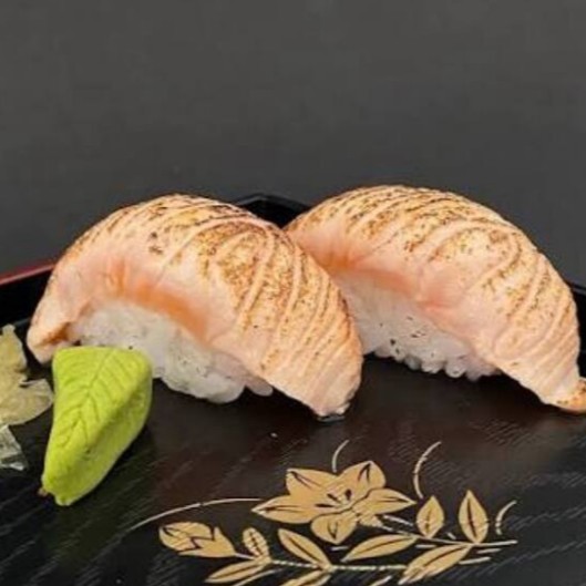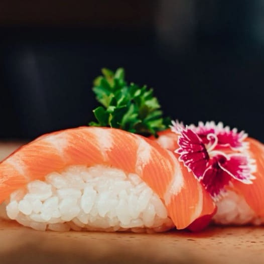 Lâmina de salmão envolto no delicioso arroz japonês.