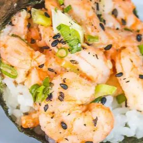 ENVOLTO DE ARROZ NO NORI, REVESTIDO COM CAMARÃO, E CREAM CHEESE, LEVEMENTE EMPANADO NA FARINHA PANKО, REGADO AO MOLHO ESPECIAL