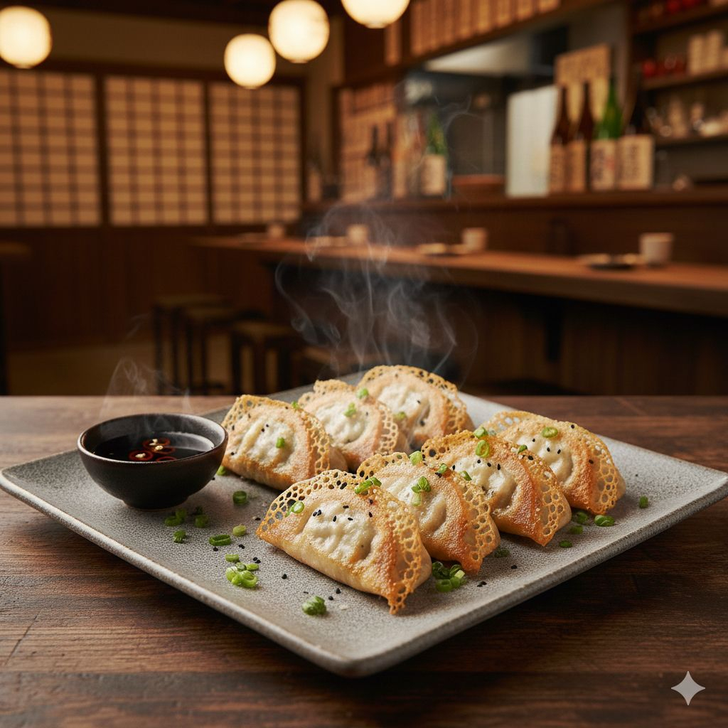 MASSAS FINAS RECHEADAS DE CARNE SUINA, ACOMPALHADA AO MOLHO AGRIDOCE.