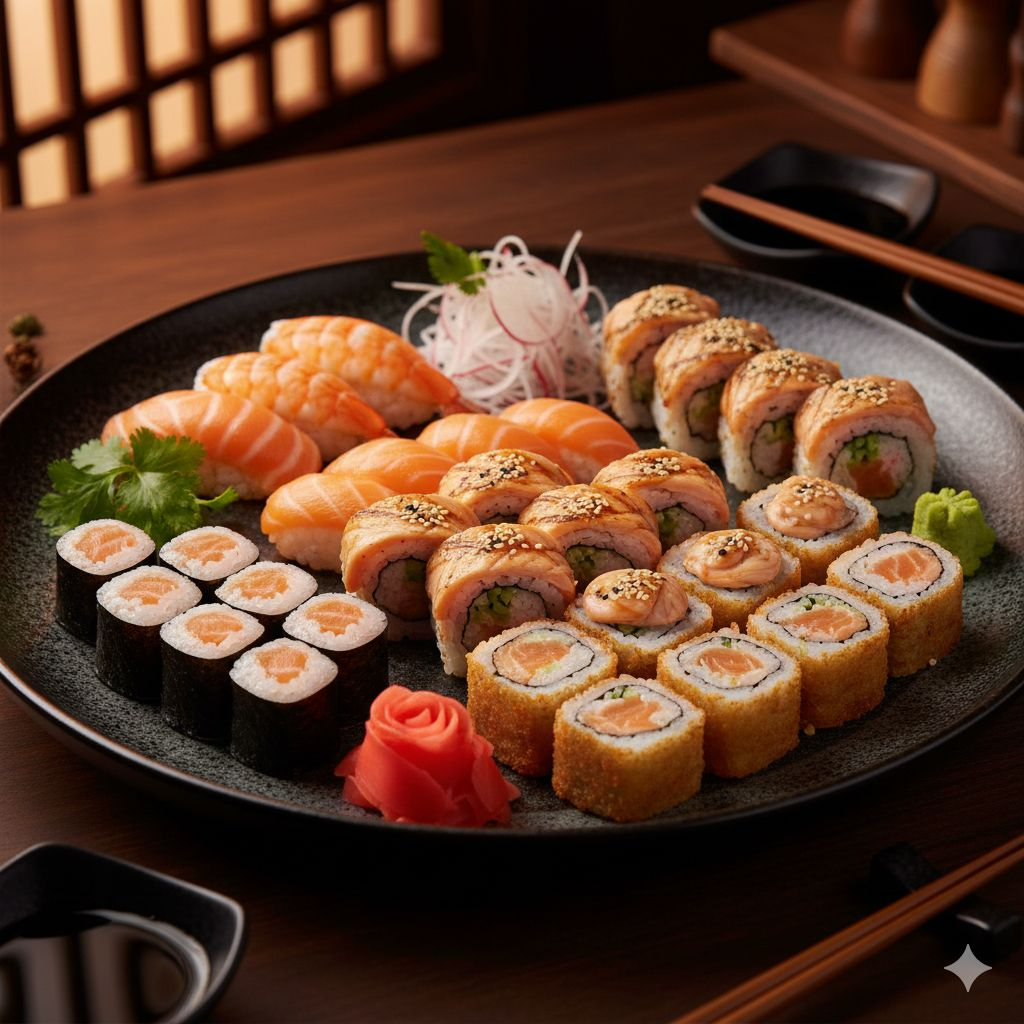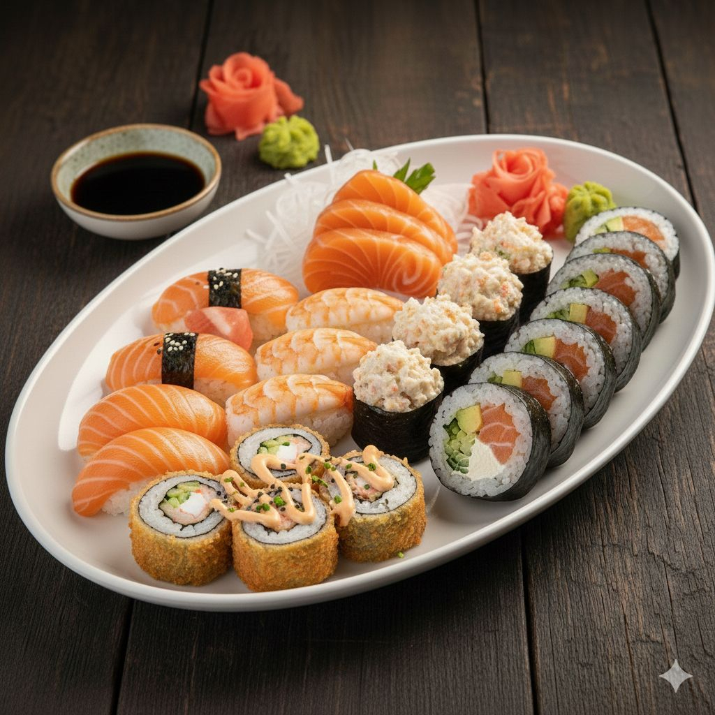 04 NIGUIRI SALMÃO, 03 NIGUIRI CAMARÃO, 03 JOY CAMARÃO, 05 MAKI JERICOACOARA, 05 URA CARNEIRO, 10 URA GALES MARAGOGI, 10 HOT HOLL MARAGOGI, 10 HOT ROLL TABATINGA, 10 HOT GALÉS DE MARAGOGI.