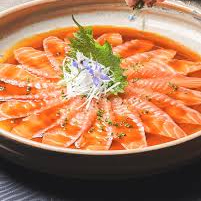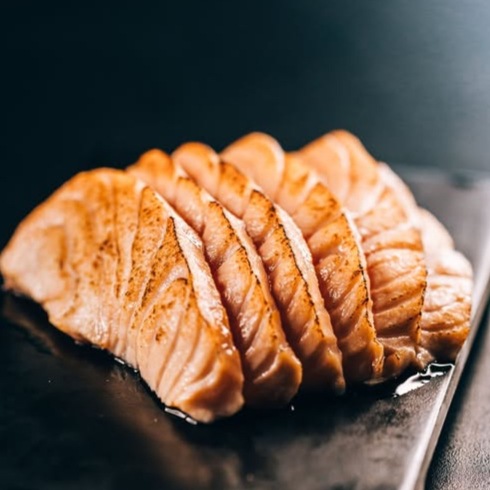 Fatias finas e fresca de salmão, perfeita para apreciar a textura e o sabor puro do peixe.