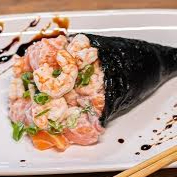 50G SALMÃO/50G CAMARÃO/50G POLVO R$ 67,00 ENVOLTO DE SHARI NO NORI, REVESTIDO COM CAMARÃO, SALMÃO CRU, POLVO E CREAM CHEESE, LEVEMENTE EMPANADO NA FARINHA PANKO, REGADO AO MOLHO ESPECIAL