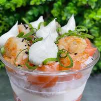 SALMÃO, CAMARÃO E KANI SÃO MARINADOS PERFEITAMENTE NO LIMÃO, COM UM TOQUE VIBRANTE DE PIMENTA SRIRACНА.