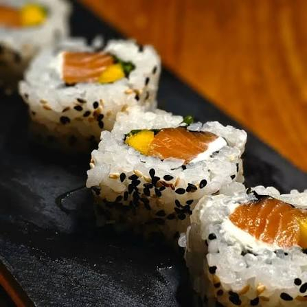 ENVOLTO DE ARROZ NO NORI REVESTIDO COM SALMÃO GRELHADO E CREAM CHEESE, LEVEMENTE EMPANADO NA FARINHA PANKО FRITO EM OLÉO ESPECIAL.