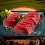 Fatias finas e fresca de Atum, perfeita para apreciar a textura e o sabor puro do peixe.
