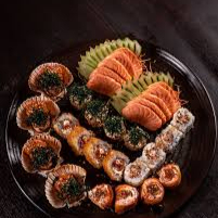 05 SASHIMI MAÇARICADO, 04 NIGUIRI SALMÃO, 03 NIGUIRI CAMARÃO, 03 JOY SALMÃO, 10 MAKI SALMÃO, 10 URA SALMÃO GRELHADO, 05 HOT SALMÃO GRELHADO, 05 HOT CAMARÃO.