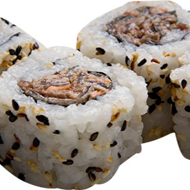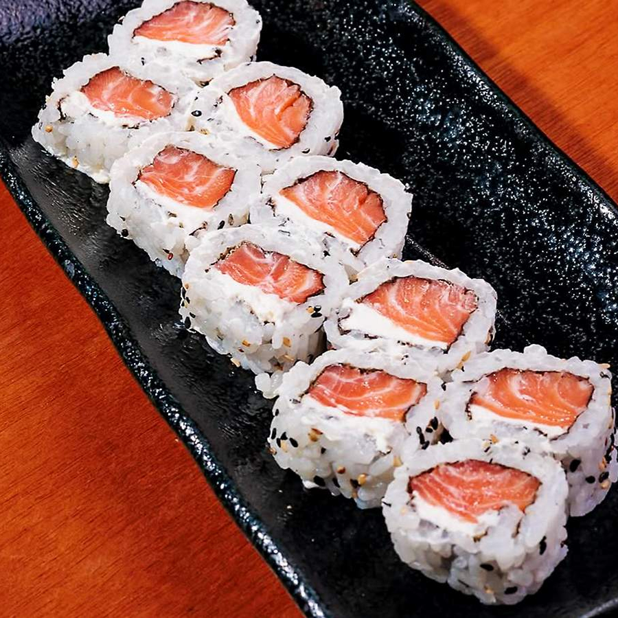 ENVOLTO DE ARROZ NO NORI, REVESTIDO COM SALMÃO GRELHADO E CREAM CHEESE, LEVEMENTE EMPANADO NA FARINHA PANKO, REGADO AO MOLHO ESPECIAL