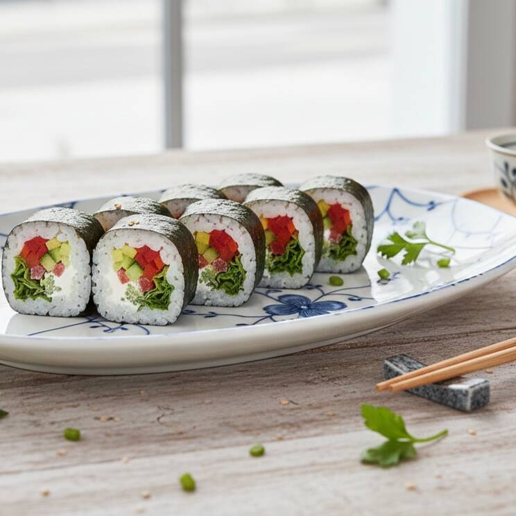 NORI COM ARROZ REVESTIDO KANI CEBOLIINHA E CREAM CHEESE.