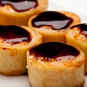 Dupla de kani enrolado com camarão, molho de geleia de rubras e cream cheese