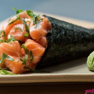 Joy De Salmão (08 Unidades, Bolinho De Arroz Na Lâmina De Salmão Com Batidinha De Salmão, Cream Cheese E Cebolinha)