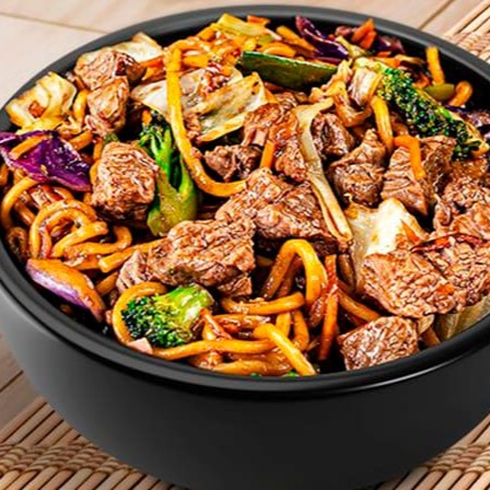 Delicioso yakissoba com macarrão ao dente, legumes frescos, proteína ao ponto e molhos especiais do chef; enviados em embalagens ideais para que seu yaki chegue na temperatura certa.