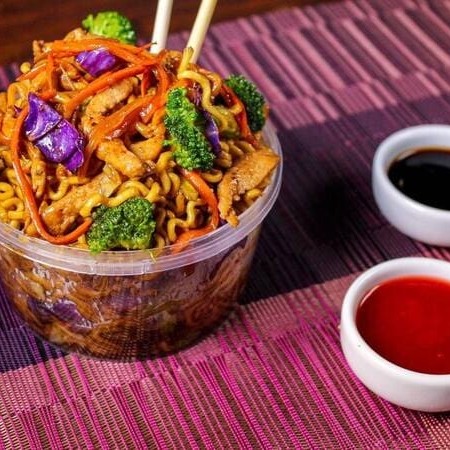 Delicioso yakissoba com macarrão ao dente, legumes frescos e molhos especiais do chef; enviados em embalagens ideais para que seu yaki chegue na temperatura certa.