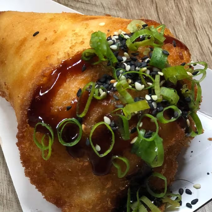 Preparado com: Saquê Licoroso, Tonkatsu e Shoyu.