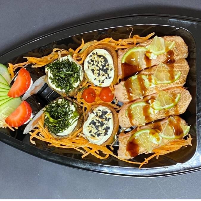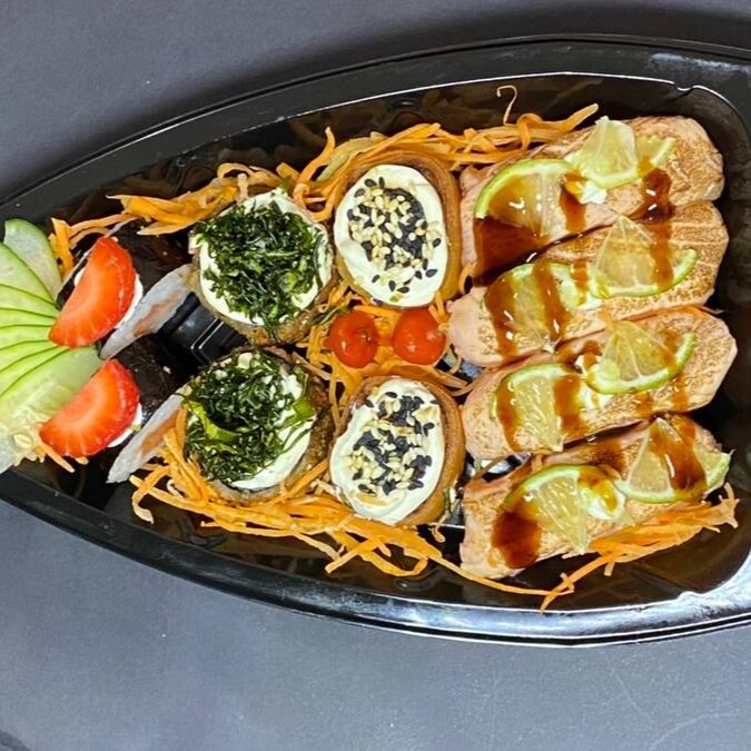 Barca 10 Peças, Temaki Salmão Grelhado e Refrigerante 225ml