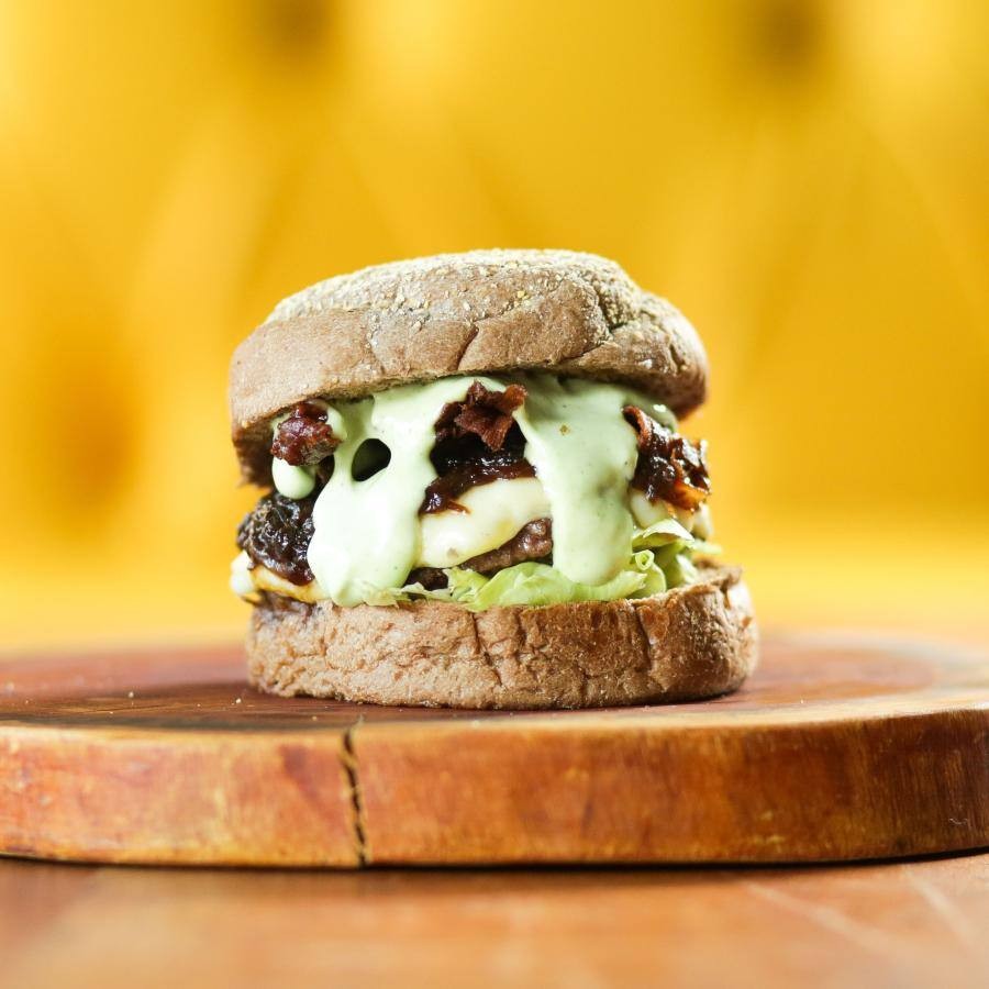 2 Taurus ( wagyu, queijo quartirolo, finas fatias de bacon, cebola caramelizada, molho especial da casa, tomate fresco e alface no pão artesanal australiano. )