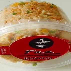 É uma camada de arroz, depois outra de creme cheese, depois uma camada de salmão cru ou grelhado e camarão, ai mais uma camada de arroz, outra de creme cheese, outra camada de salmão cru ou grelhado e camarão, e por fim os condimentos a sua escolha Lembre-se de marcar os complementos gratuitos disponíveis, para que possamos caprichar ainda mais no seu pedido! No Ca-Pri-Cho!