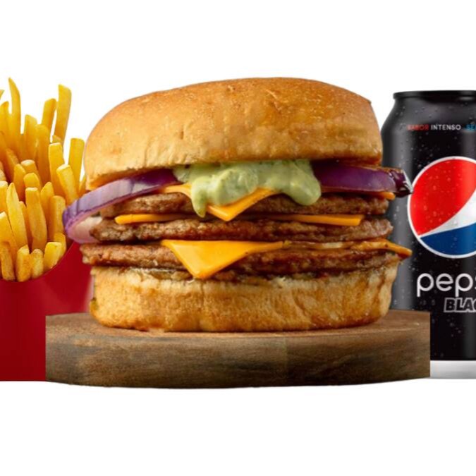 [ Combo Pepsi 200 Ml + 1 Triplo X Burguer ]Combo individual um suculento hambúrguer triplo com 3 carnes de hambúrguer tradicional, queijo cheddar profissional, maionese temperada + Pepsi 200 Ml ou outra bebida de 200ml de acordo ao estoque disponivel no momento.