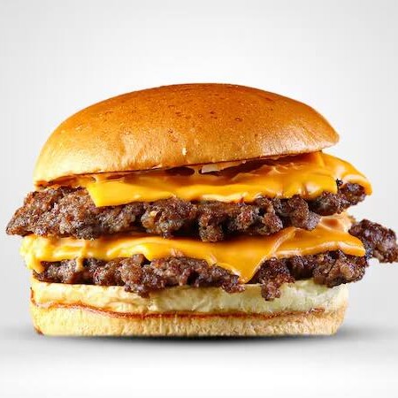 Duplo Smash 120g cada carne de hambúrguer bovina 100% artesanal, quatro fatias de queijo , maionese temperada e pão selado na chapa.