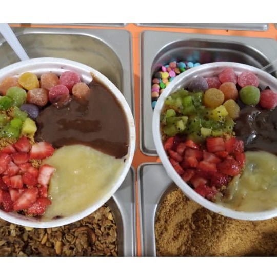 Metade Açaí e a outra metade Creme ou Sorvete a sua escolha, com os mais deliciosos complementos da casa....