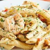 Penne envolvido em molho cremoso de camarões salteados no alho, com ervas frescas e leve nota de limão. APRX 400g