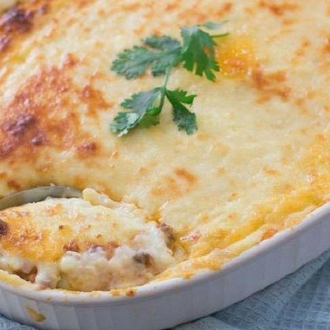 Purê de aipim cremoso recheado camarão alho e óleo, coberto com queijo ralado. Prato saboroso, cremoso e bem servido. SÓ HOJE ACOMPANHA GOOB 230ML