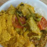 Corvina macia cozida no leite de coco, azeite de dendê e temperos frescos. Um prato tradicional, cheio de sabor e com o verdadeiro tempero da Bahia. Acompanha arroz, feijão carioca e salada.
