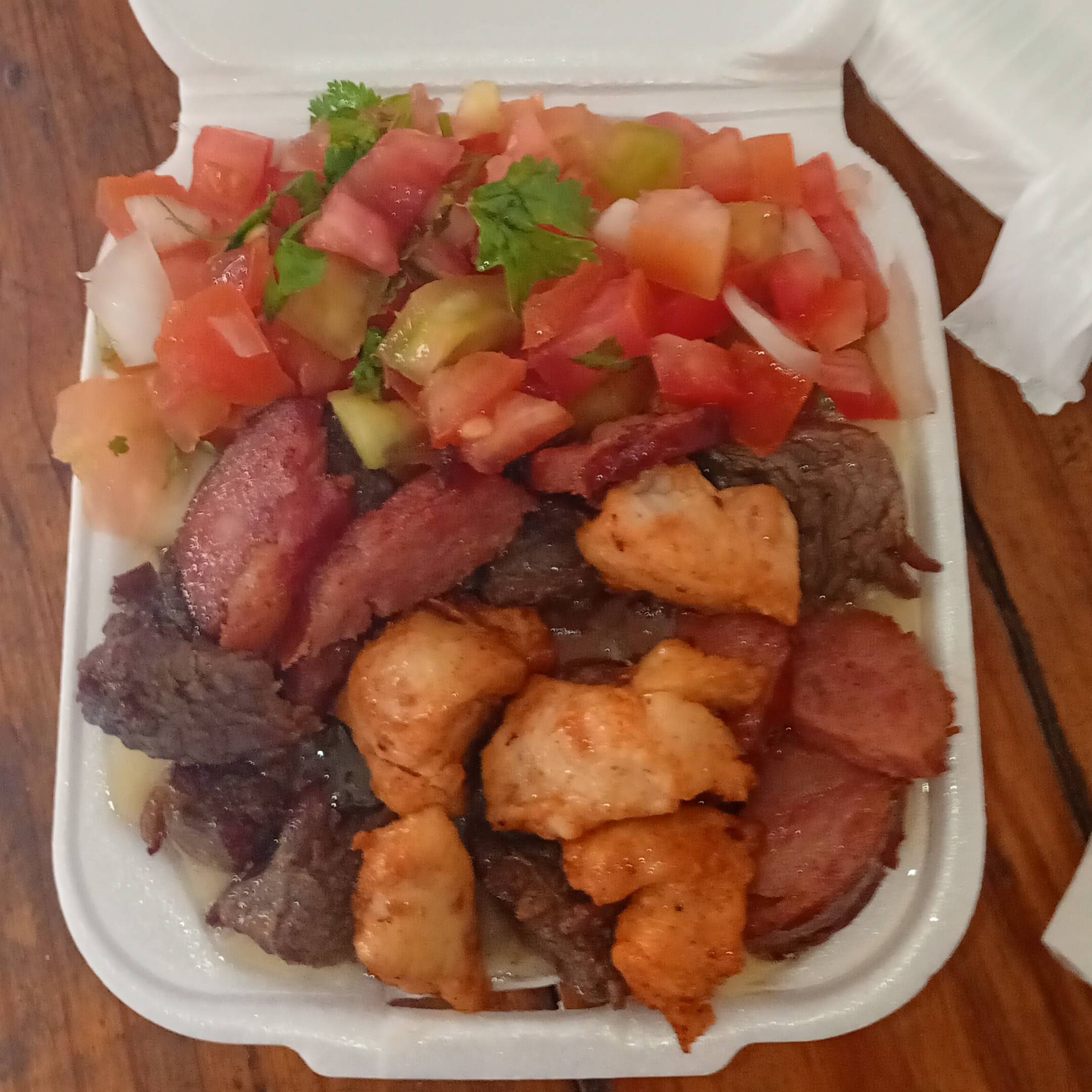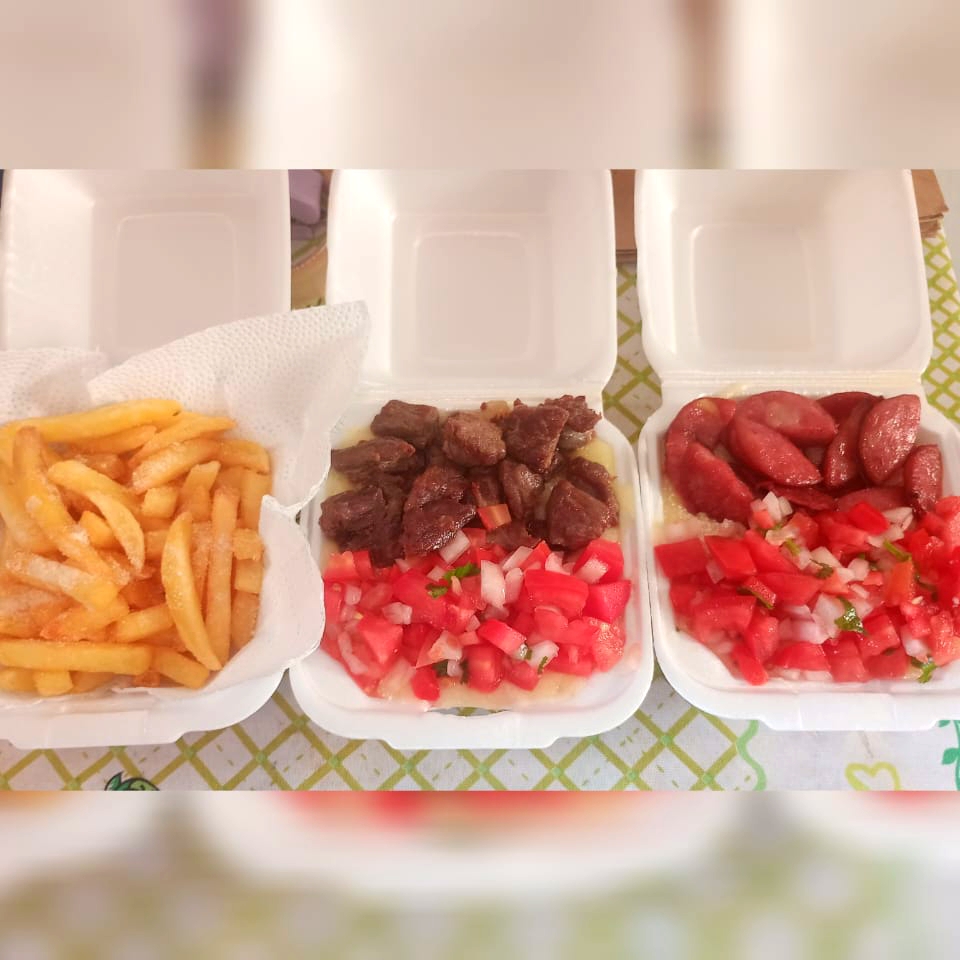Acompanha 1 batata fritas 250g 1 Pirão de aipim com Carne do sol e salada vinagrete + 1 Pirão de aipim com calabresa e salada vinagrete 250g