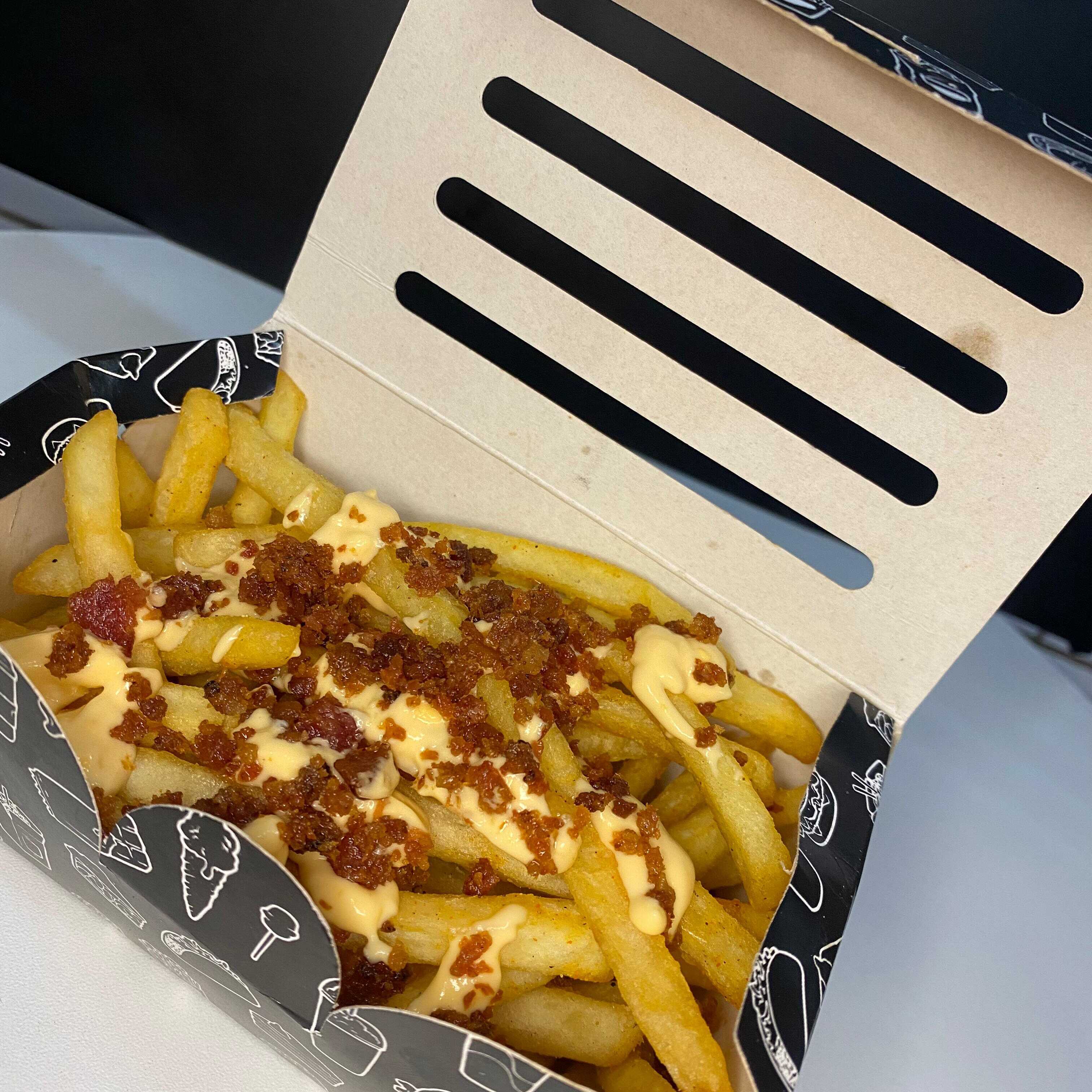 Porção de batata frita super crocante quentinha e temperada.