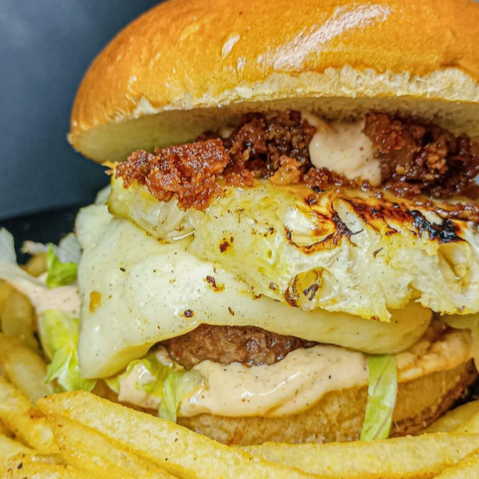 Uma explosão de sabores pra quem já perdeu o controle da dieta (e da sanidade). Pão artesanal, maionese da casa, salada fresca, carne suculenta (120g), molho chimichurri defumado, creme de cheddar, farofa de bacon e mais pão para fechar o surto com chave de ouro. •Diagnóstico: euforia, satisfação extrema e vontade de repetir.