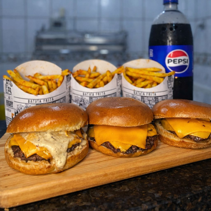 2 burguers deliciosos (podendo ser qualquer um do cardápio, basta especificar na observação, *exceto o Big Terapia*) 2 Porções de Batata Frita de 100g 1 Refrigerante de 1 litro. Atenção: caso não escolha o burguer, enviaremos o Psico Burguer e o Doce Ilusão. • Aviso Terapêutico: risco alto de vício e felicidade extrema.