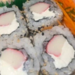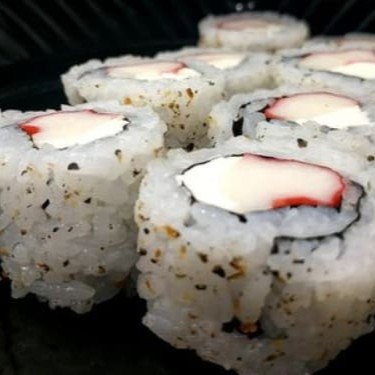 Arroz japonês, alga nori, kani, , cream cheese e gergelim. Não acompanha molho nem hashi.