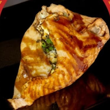 Arroz japonês, nori, salmão grelhado e cream cheese, enrolados e empanados em farinha panko, finalizados com geleia de pimenta. Não acompanha molho nem hashi.