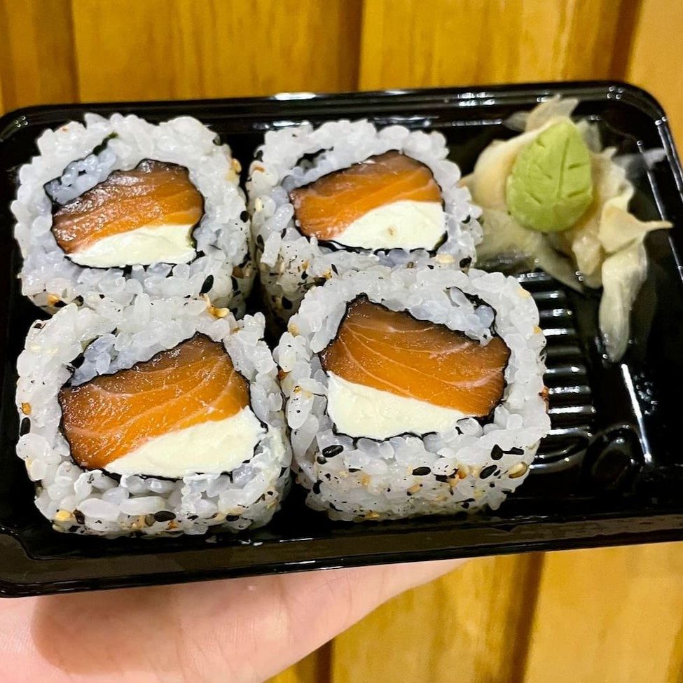 Salmão, creme cheese e cebolinha. Não acompanha molho nem hashi.