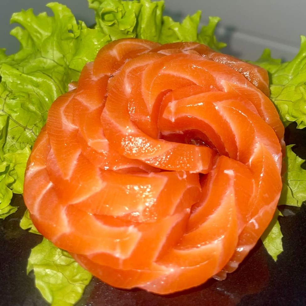 Laminas de salmão cru. Não acompanha molho nem hashi.