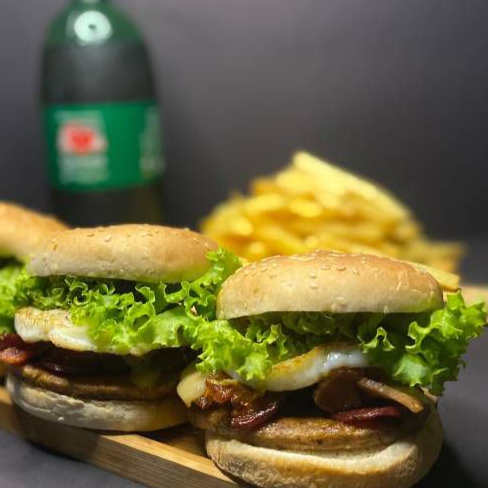 Pão, 2 Hambúguer de 50g, 2 Queijo, Picles, Alface e Tomate