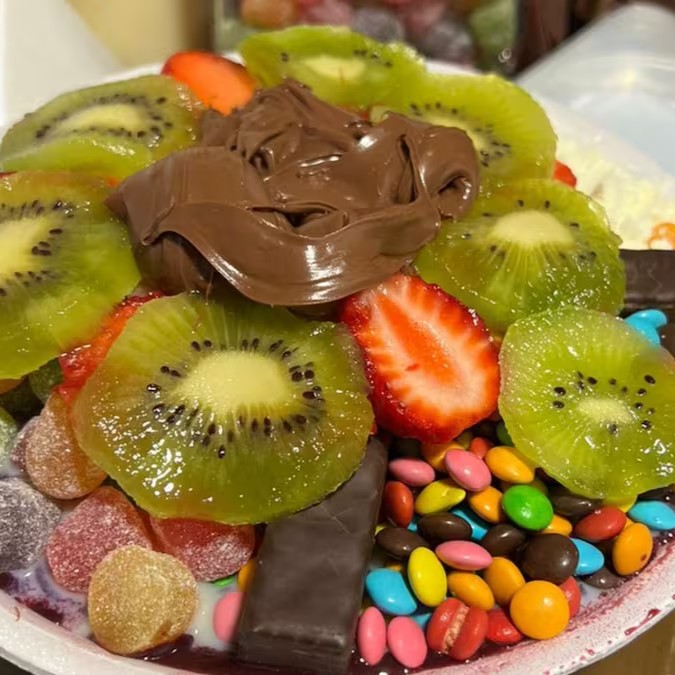 Delicioso Açaí 100% fruta. Você monta do seu jeito, podendo escolher até 05 itens