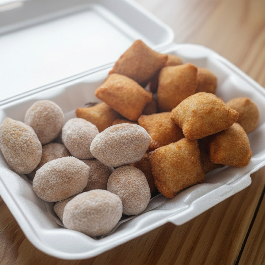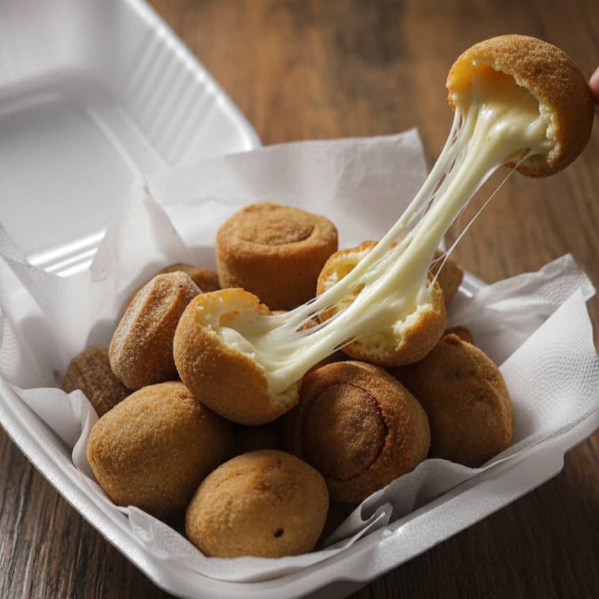 15 salgados fritos na hora: 5 Bolinhas De Queijo, 5 Enroladinhos De Salsicha + 5 Churros Com Doce De Leite. Salgados Tamanho Festa.