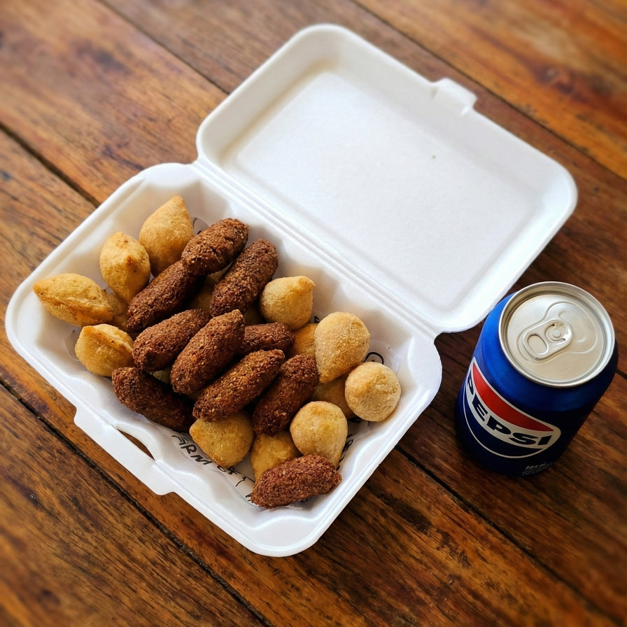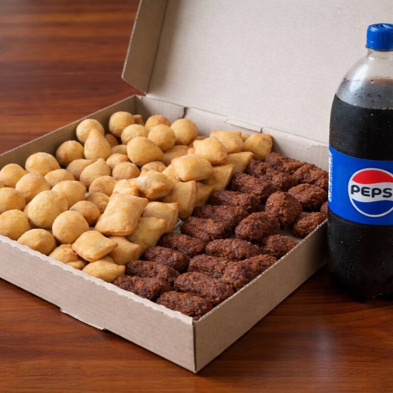 Esse Deliciosos Kit Vai com : 50 salgados fritos na hora + um Refrigerante de 1 litro Grátis