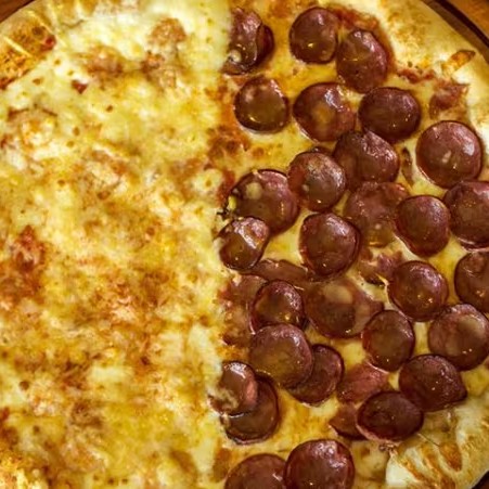 Delicie-se com a nossa Pizza Média de Dois Sabores, disponível na Super Promoção.