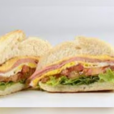 Para os amantes de café da manhã a qualquer hora, este sanduíche apresenta ovo, queijo, presunto e uma refrescante salada, tudo entre duas fatias de pão delicioso.