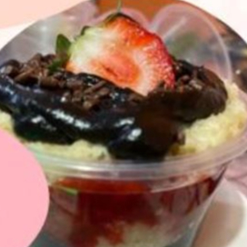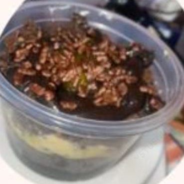 Delicioso bolode pote 250ml massa branca, massa de chocolate e recheio de maracujá com chocolate.