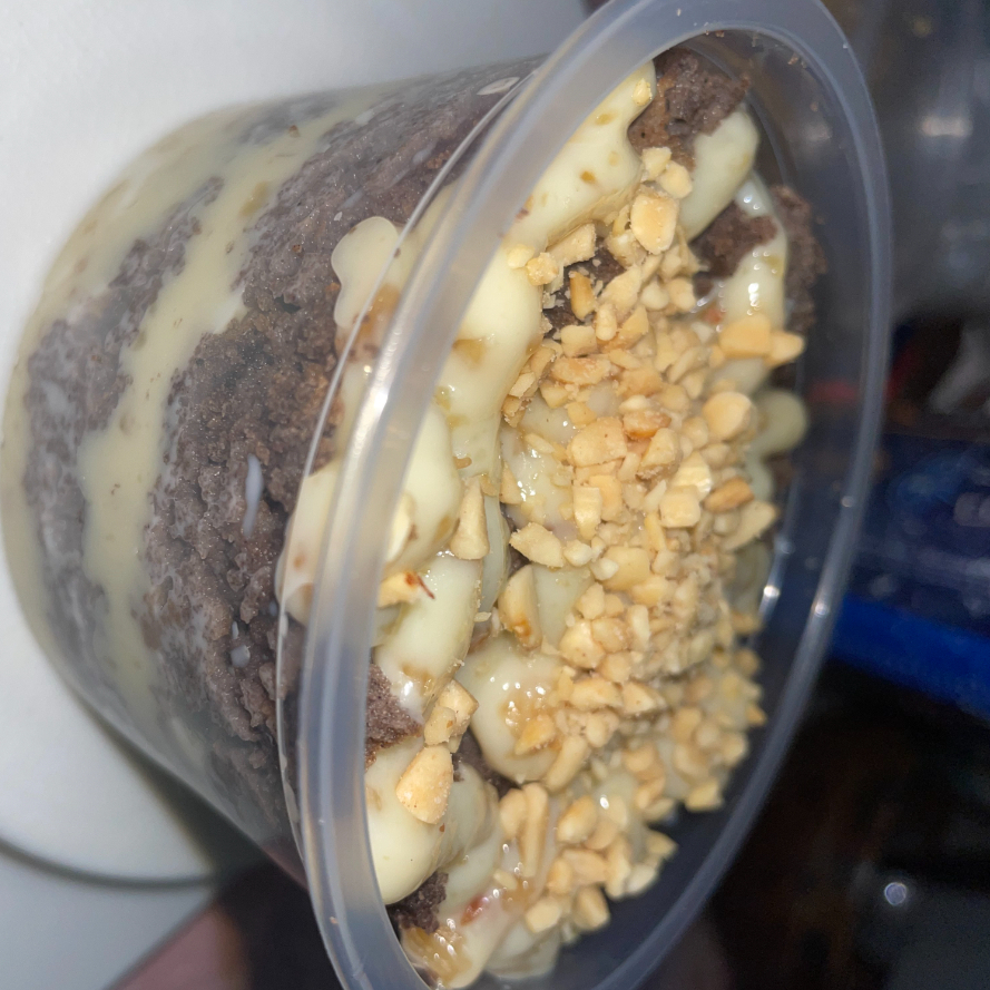Delicioso bolo de pote 250 ml com recheio crocante de amendoim + refri pequeno 230ml