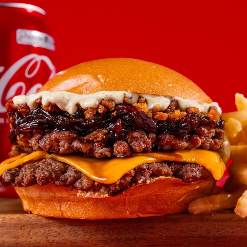 Duplo smash com cheddar, molho picante exclusivo e bacon caramelizado. O equilíbrio perfeito entre sabor intenso e uma picância na medida!