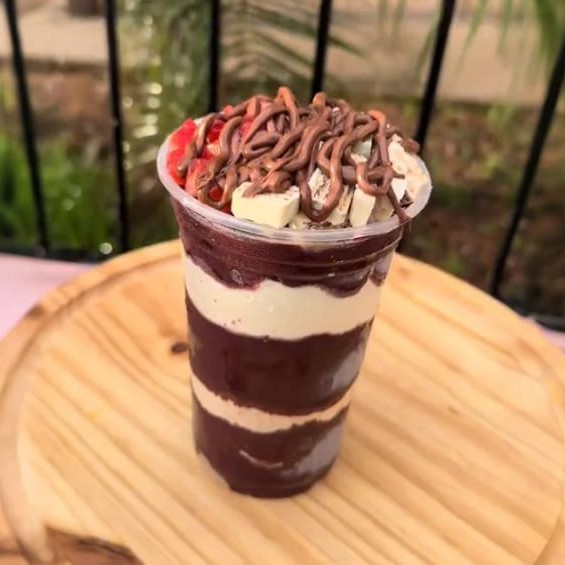 Delicie-se com nosso copo de 500ml de açaí! Monte do seu jeito! Escolha seus sabores e leve 4 acompanhamentos grátis. A combinação tropical perfeita para um Dia refrescante e cheio de sabor!